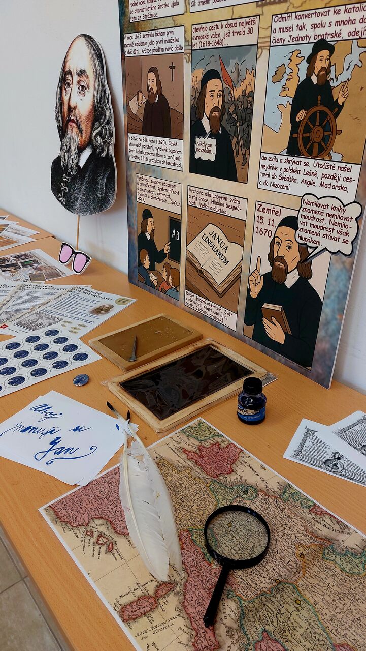 Komentovaná prohlídka unikátních původních tisků J. A. Komenského v knihovně muzea. Seznámíte se s významnými díly, jako jsou například "Janua linguarum reserata" (Dvéře jazyků otevřené), "Orbis sensualium pictus" (Svět vnímatelných věcí v obrazech). Získáte informace o postupu restaurování a ochraně historických tisků, ale i možnostech digitálního přístupu. Program je obohacen o pracovní listy a interaktivní tabuli, na závěr také o tvořivý koutek, kde si lze vyzoušet tehdejší psací pomůcku husí brk. Získejte hlubší vhled do života a práce významného pedagoga a filozofa.