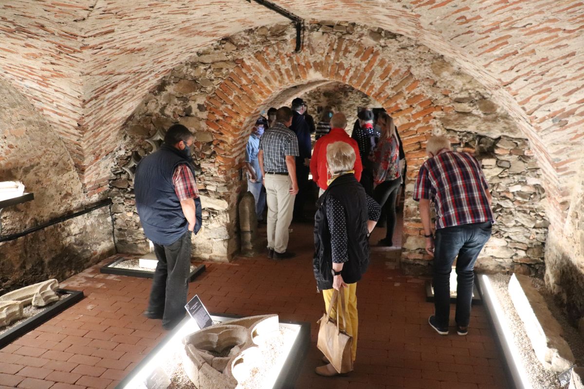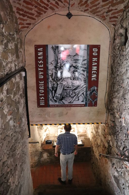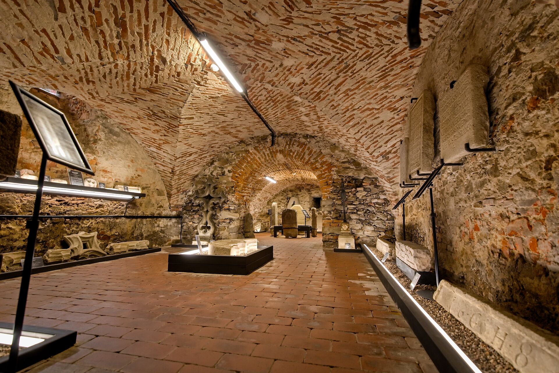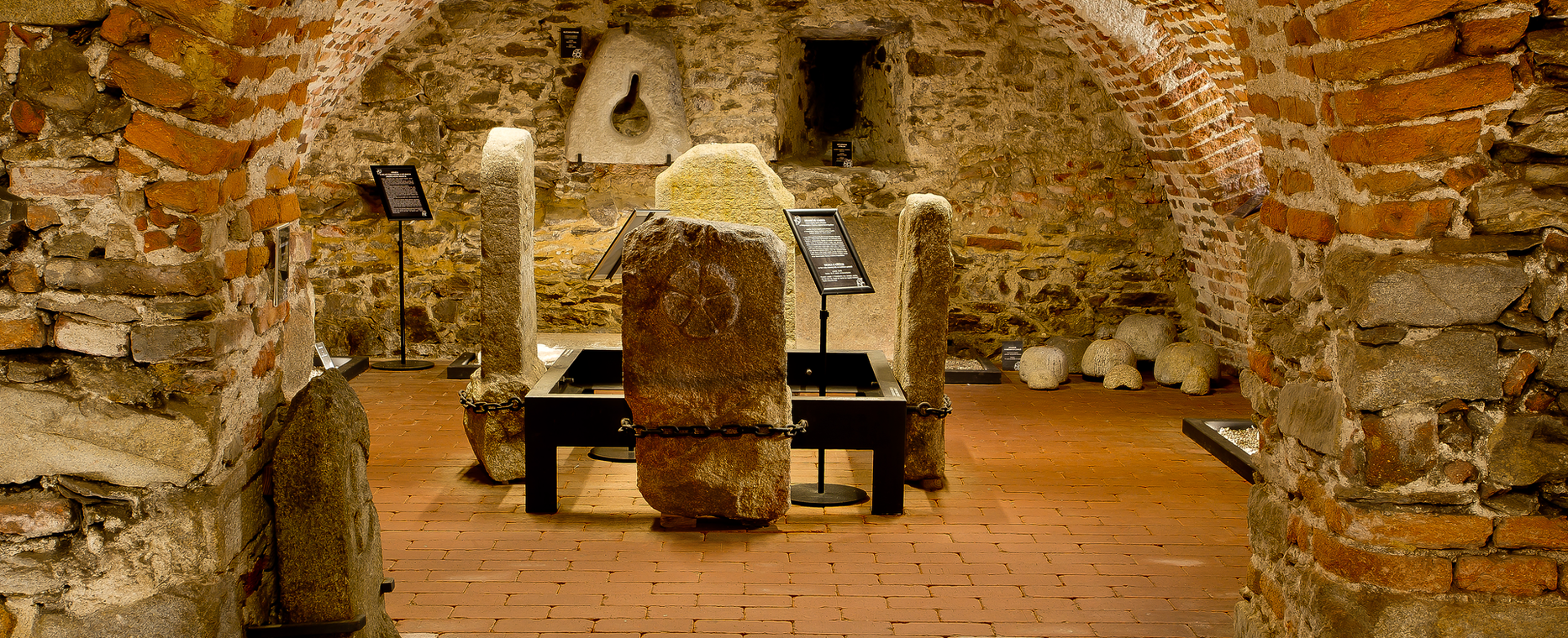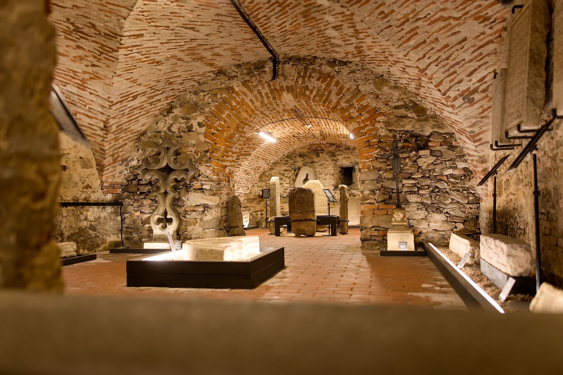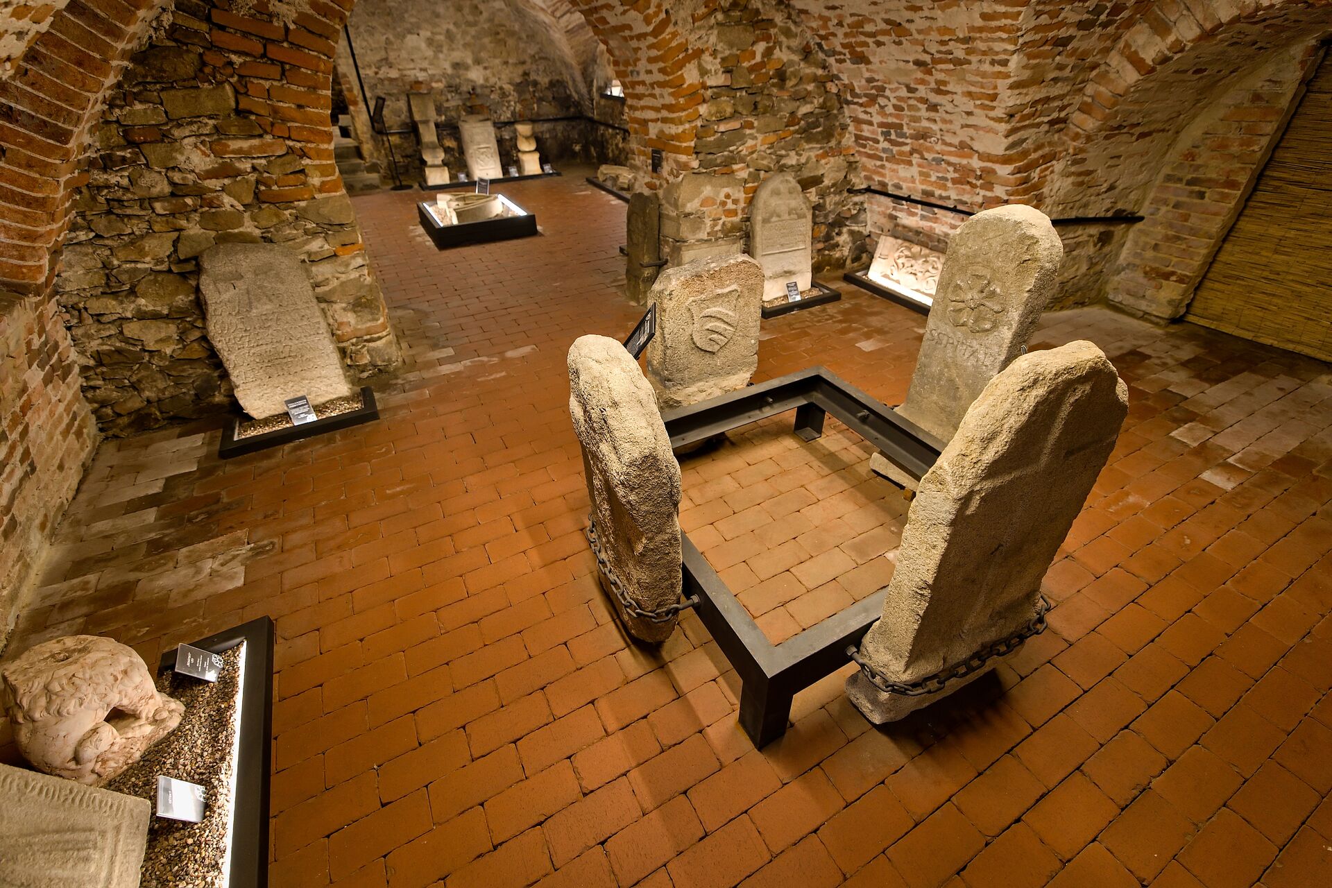 Expozice je umístěna do dvou nově zrekonstruovaných sklepních prostor Muzea Jindřichohradecka na Balbínově náměstí. Představuje bezmála čtyřicet nejzajímavější a nejhodnotnější kamenných artefaktů ve sbírkách muzea. Vystaveny jsou jednostranné i oboustranné desky se smírčími kříži, tympanony církevních vchodů, střílny, votivní desky s českými a německými nápisy, ozdobná kostelní i domovní ostění oken a dveří, závaží, kostelní pokladnička, náhrobky a jejich části, novogotické kříže a další. Expozice, u vybrané části exponátů doplněná o popisky v brailově písmu, představuje umění kameníků od 14. do 19. století. Unikátními jsou tympanon z 2. poloviny 14. století, představující anděly vytahující hřeby z rukou Krista na kříži, a kruhový svícen z 15. století tzv. „Schalenstein“ se čtyřmi otvory, který patří mezi pouze dva známé exponáty svého druhu v České republice.