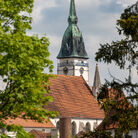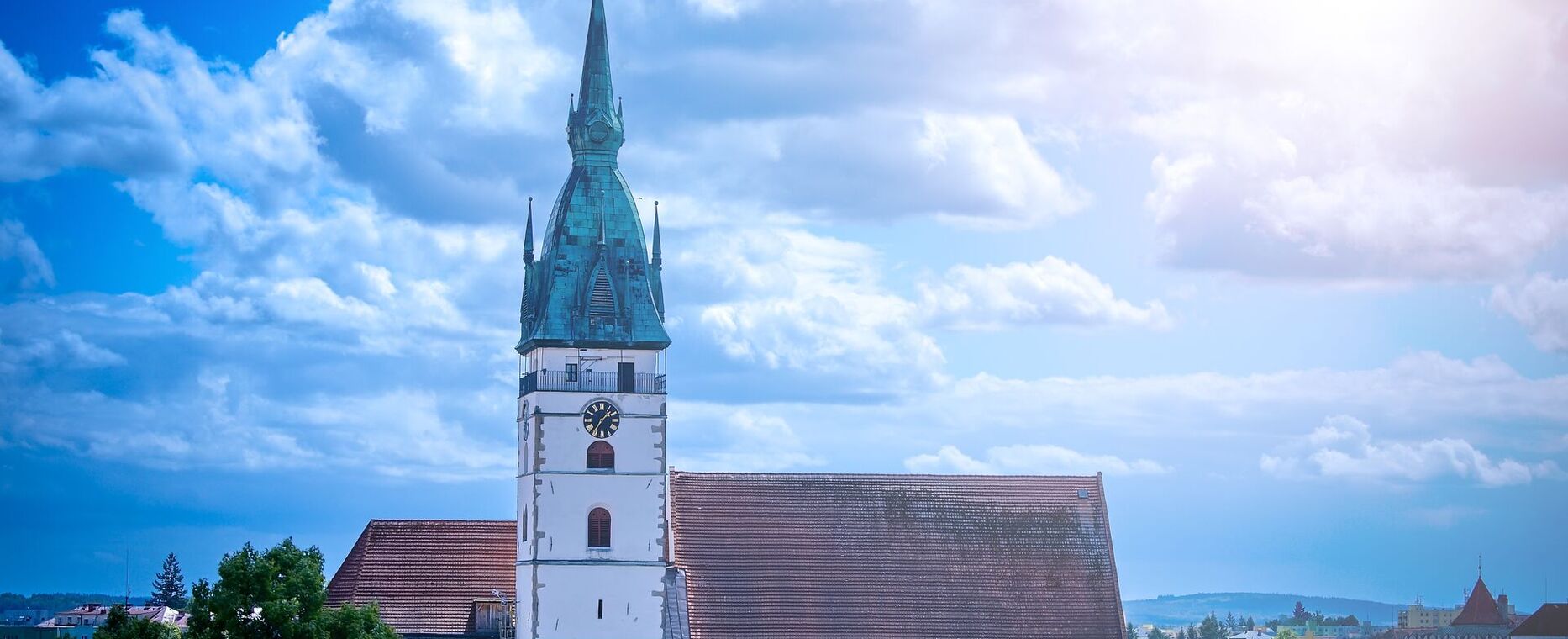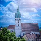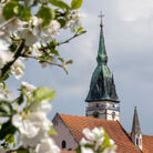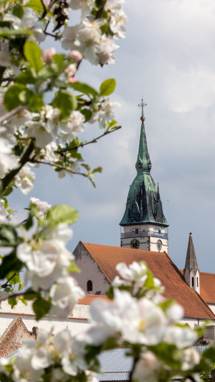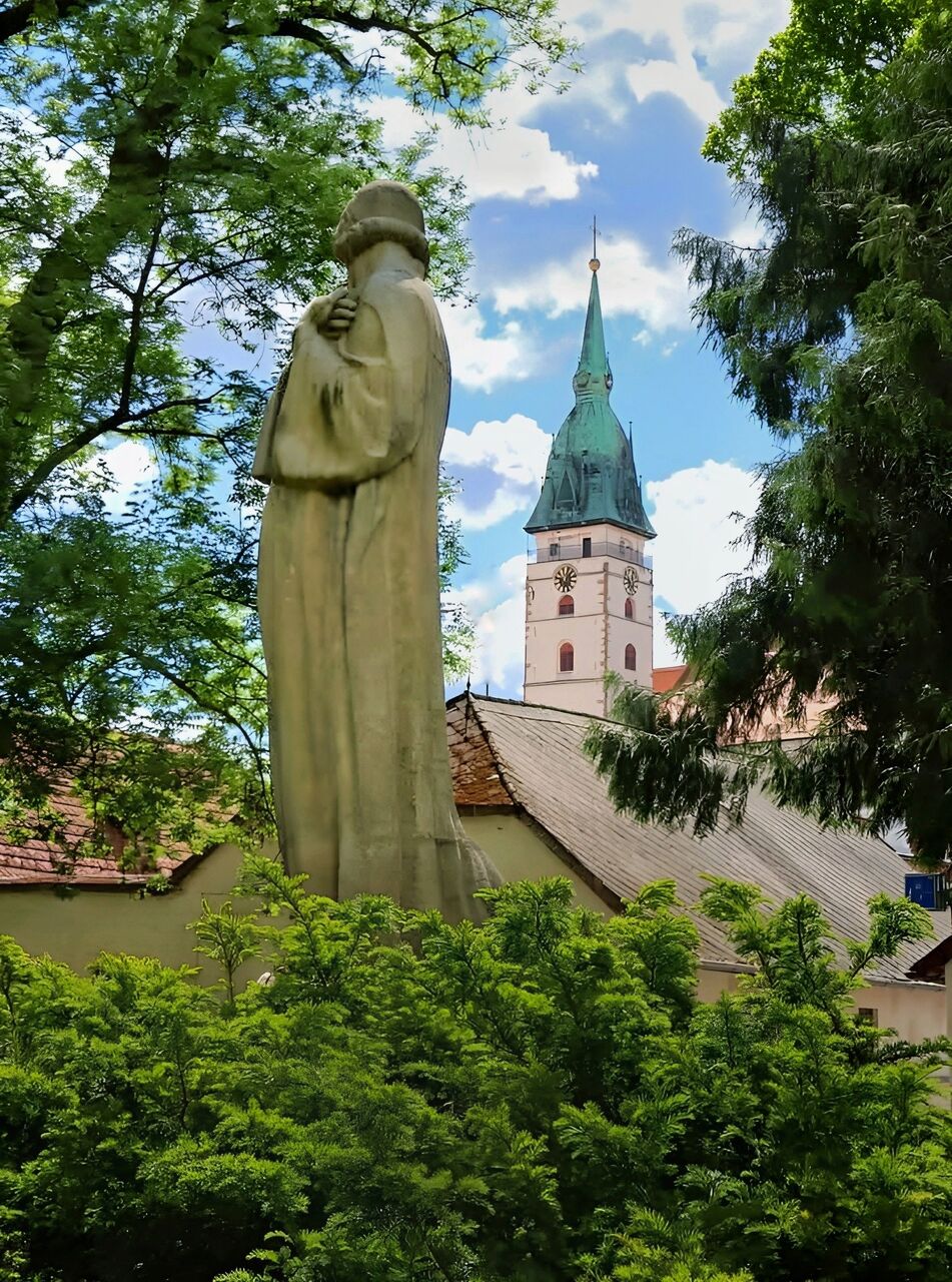 Věž u kostela Nanebevzetí Panny Marie je nejvyšší věží města, měří celkem 68,3 metru, z toho báň téměř 24 metrů. Koule na vrcholu má průměr 1,2 metru a kříž na špici je 5 metrů vysoký. Návštěvník, který vystoupí po 153 schodech až nahoru, si bude město prohlížet z výšky 35,3 metru a octne se přitom ve výšce 513 metrů nad mořem. Nárožím kostela Nanebevzetí Panny Marie prochází 15. poledník východní délky.