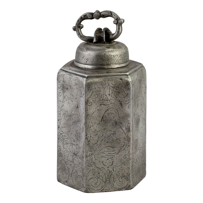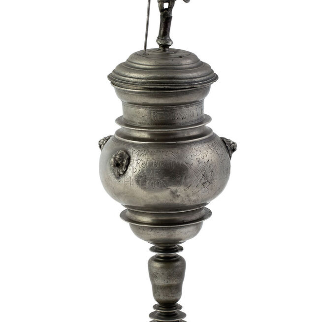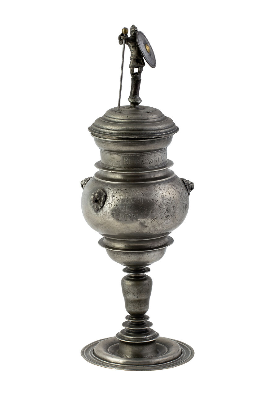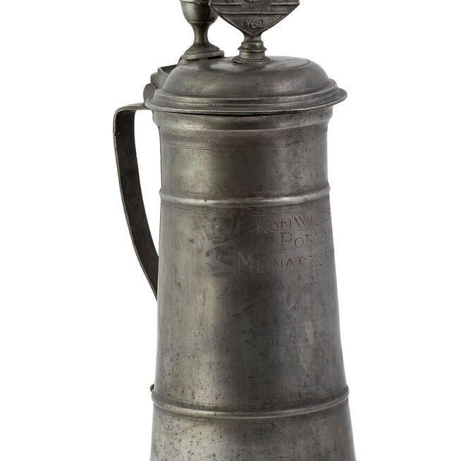 Nejdůležitější je však kolekce honosných cechovních džbánů a pohárů pocházejících přímo z Jindřichova Hradce, které zároveň dokumentují bohatství a společenskou prestiž místních cechů. Nejstarší předměty lze datovat do druhé poloviny 16. století, nejmladší do počátku století dvacátého, přičemž nejvýznamnějšího rozkvětu zaznamenalo užívání cínového nádobí v období od 2. poloviny 18. století až do poloviny 19. století. Z cínu se vyráběly nejen reprezentativní džbány, holby a poháry, ale také běžné užitkové předměty jako talíře, teriny, naběračky a konvice na čaj. Zároveň byl používán při výrobě lékárenských, například měrek a klystýrů, a liturgických předmětů, jakými byly kropenky, svícny a kadidelnice.