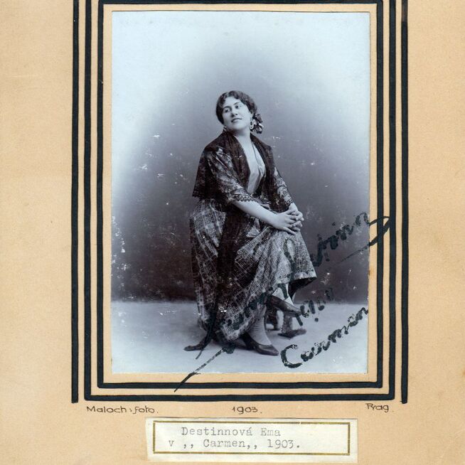 Po její smrti odkoupilo v roce 1934 jindřichohradecké muzeum od manžela Josefa Halsbacha některé předměty z její pozůstalosti a část vybavení zámku, které vytvořily základ současného fondu. Dalšími akvizicemi, především z okruhu známých žijících v regionu a příbuzných, ho postupně rozšiřovalo. Část fondu získalo muzeum také darem od Společnosti Emy Destinnové, která mimo svou hlavní náplň shromažďovala i hmotné památky na umělkyni. Mnohé předměty z pozůstalosti Emy Destinnové jsou dnes zařazeny v jiných fondech muzea (např. nábytek, obrazy, hodiny, porcelán a keramika). V současnosti fond Ema Destinnová čítá více než 900 položek, časově pokrývajících především druhou polovinu života pěvkyně a zahrnuje např. rozsáhlou korespondenci se známými a příbuznými, jež tvoří téměř třetinu fondu, rukopisy, literární práce či některé předměty z bohatých zámeckých sbírek. Ve fondu se dále nachází fotografie, pohlednice, programy koncertů a vystoupení, plakáty a další tiskoviny, divadelní rekvizity, paruky, trofeje a památky na slavné kolegy, osobní předměty pěvkyně, oděvy, boty, šperky, nahrávky na soudobých gramofonových deskách, ale také například kočár, kterým Ema jezdívala. Cílená akvizice probíhá i nyní, neboť památky na slavnou pěvkyni se stále objevují. Přednostně se muzeum zaměřuje na získávání předmětů souvisejících s jejím působením v regionu.
