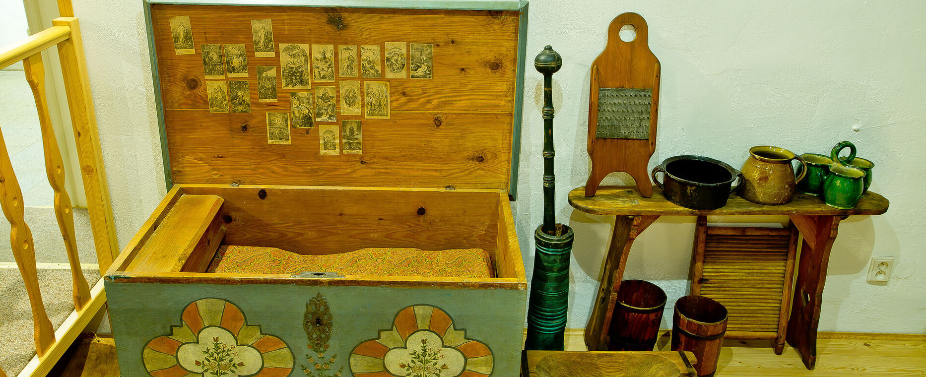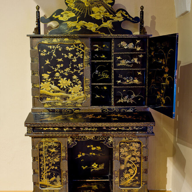 K nejstarším exponátům sbírky patří dva dřevěné sekretáře ze 17. století vykládané slonovinou, želvovinou a cínem. Evropskou tvorbu, výrazně napodobující východní orientální motivy, zastupuje sekretář z černého leštěného dřeva, zdobený vkládáním drobných barevných kovů.
