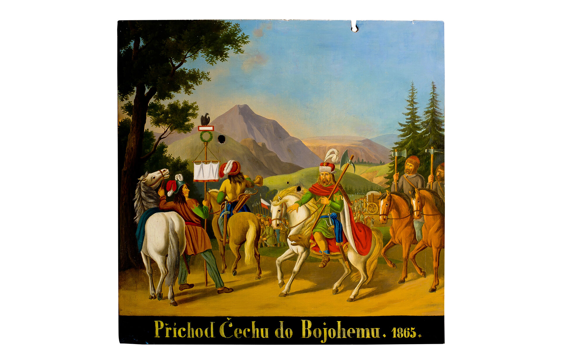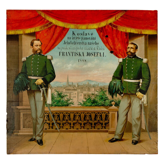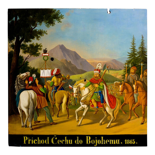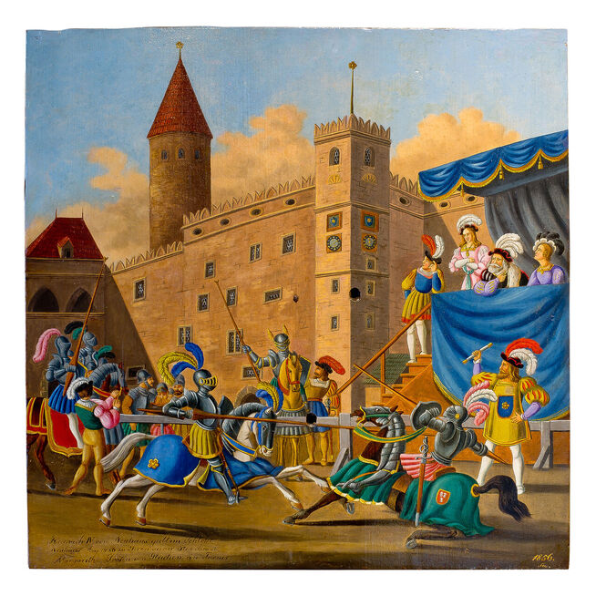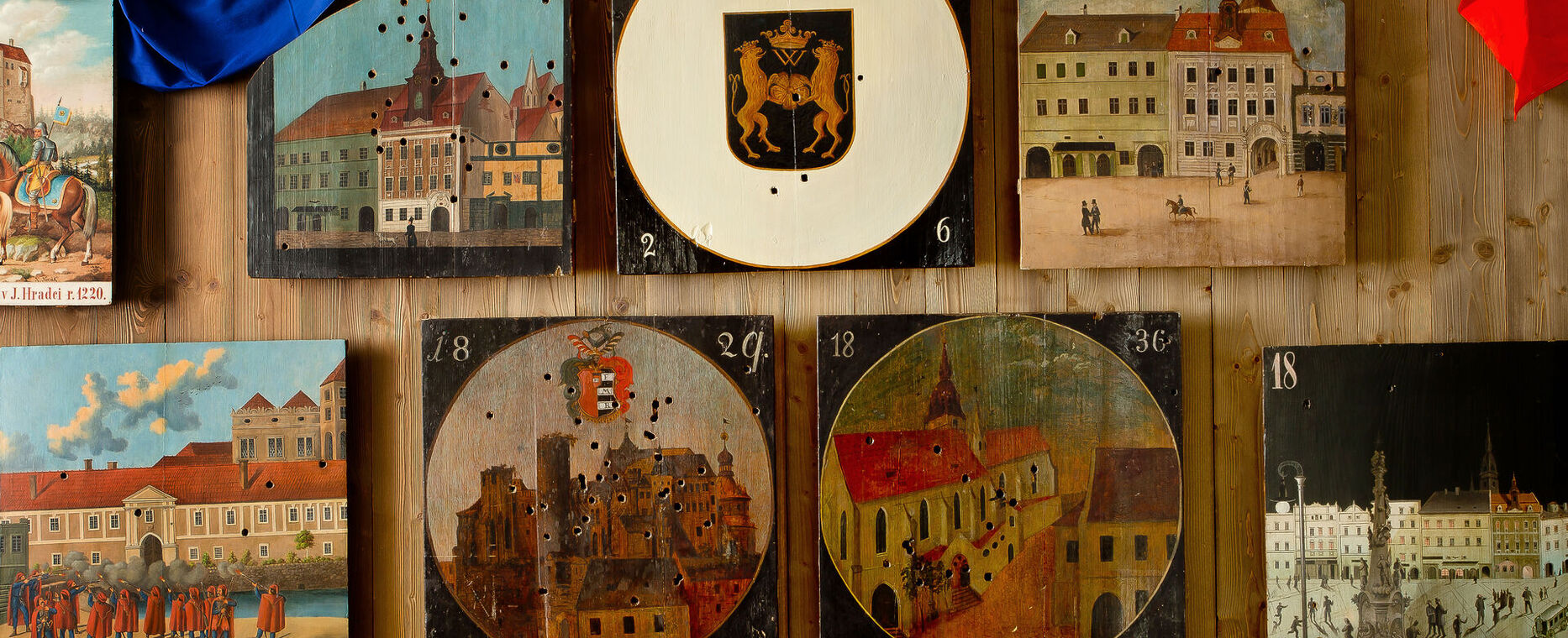 Autoři bystřických terčů a jindřichohradeckých terčů z 1. poloviny 19. století nejsou známi. Prvními známými tvůrci jindřichohradeckých terčů byli akademičtí malíři Jan See a Alois Bubák, dále malíři samouci Johann Knapp a František Holeczek. Nejvíce terčů namaloval jindřichohradecký malíř Karel Novák. Na terčích jsou často zobrazeny scény z dějin Jindřichova Hradce a ve městě sídlících rodů pánů z Hradce, Slavatů a Černínů, dále příběhy z dávné české a z novodobé evropské historie. Kromě toho se na terčích objevují zásadní okamžiky z dějin spolku jindřichohradeckých ostrostřelců, romantické krajinné motivy nebo náměty spojené s vládnoucí dynastií Habsburků.