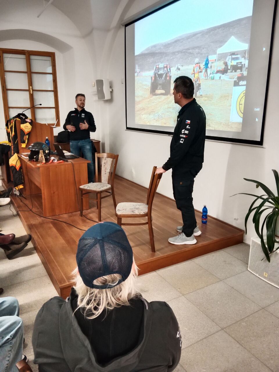 K dispozici je projektor s plátnem, velkoplošná TV a několik mikrofonů.