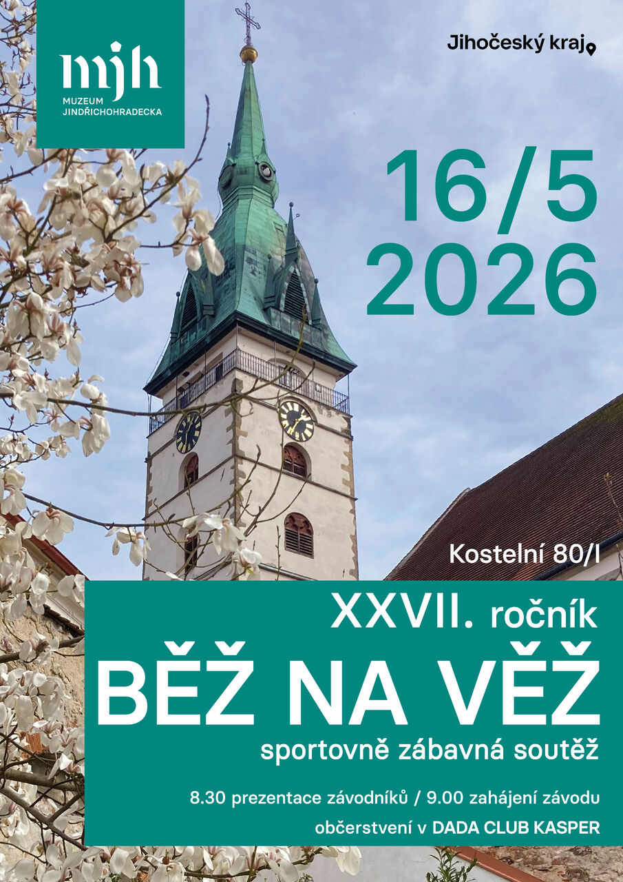 Pro všechny milovníky netradičního závodu O putovní pohár ředitelky Muzea Jindřichohradecka připravujeme již 27. ročník akce Běž na věž. Během uplynulých let se jí zúčastnily stovky amatérských i profesionálních sportovců a vyznavačů zdravého pohybu od útlého předškolního věku po zkušené seniory nad sedmdesát let, a to nejen z města nad Vajgarem, ale i dalších míst České a Slovenské republiky. I když traťový komisař Vladislav Burian měří dosažené časy přesně, vítězem je úplně každý, kdo se závodů zúčastní a vyběhne či vyjde po točitém kamenném a následně dřevěném schodišti celkem 153 schody na městskou vyhlídkovou věž až do výšky 33,5 metrů nad startem. Odměnou za dosažený výkon kromě účastnického diplomu bude i výhled na daleké okolí našeho krásného města. Prezence závodníků začíná v 8.30 hodin u městské věže, samotná soutěž pak startuje v 9.00 hodin.